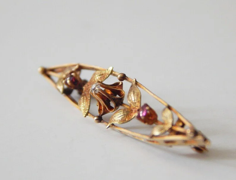 Shop Categories: All Rings Pendants & Lavaliers Pins & Brooches All | Rings | Pendants & Lavaliers | Pins & Brooches | Antique 14k Amethyst and Diamond Halo Ring SZ-6.5 $995.00 Antique 10k Diamond and Ruby Floral Brooch $165.00 14k Opal and Ruby Floral Design Ring SZ 6.5 $425.00 Antique 10k Art Nouveau Sapphire and Pearl Stick Pin $195.00 Antique 10k Mabe Peacock Pearl Filligree Brooch $225.00 Antique 10k Cameo Pendant Brooch $325.00 14k Antique Victorian Pearl and Diamond Lavalier Pendant $185.00 Antique 18k French Chimera Stick Pin $525.00